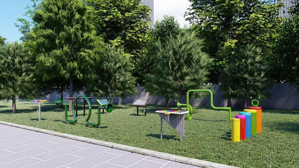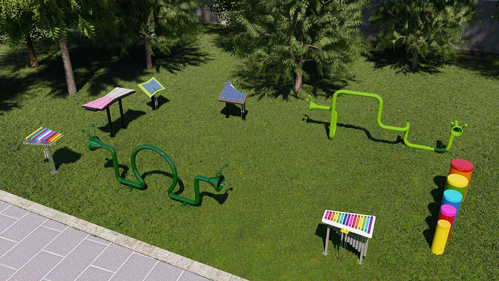 צבע הקפה הפשוט של מכשיר הפארק המוזיקלי החיצוני של מנגינה מעורר זיכרונות של סתיו עמוק ומשפר כל סביבה בחוץ לאורך כל השנה. מתאים מאוד לפארקים, גני שעשועים וגנים, זה מעודד אנשים בכל הגילאים והיכולות לחקור מוזיקה. על מנת להשיג הרכב הרמוני, השילוב החלק של מכשירי מנגינה וקצב מספק דואט שחסך חלל שמוסיף קסם מלודי לכל סביבה.