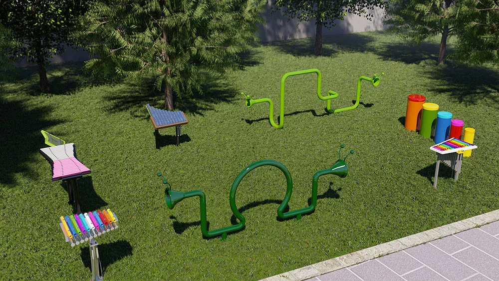 הגודל של כלי נגינה חיצוניים The Sensory Play הוא 80*60*95 ס"מ, עשוי מסגסוגת אלומיניום איכותית+304 חומר נירוסטה. גודל הקופסה החיצונית שלו הוא 90*80*25 ס"מ